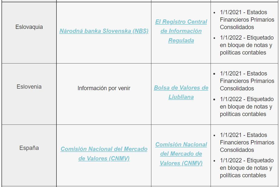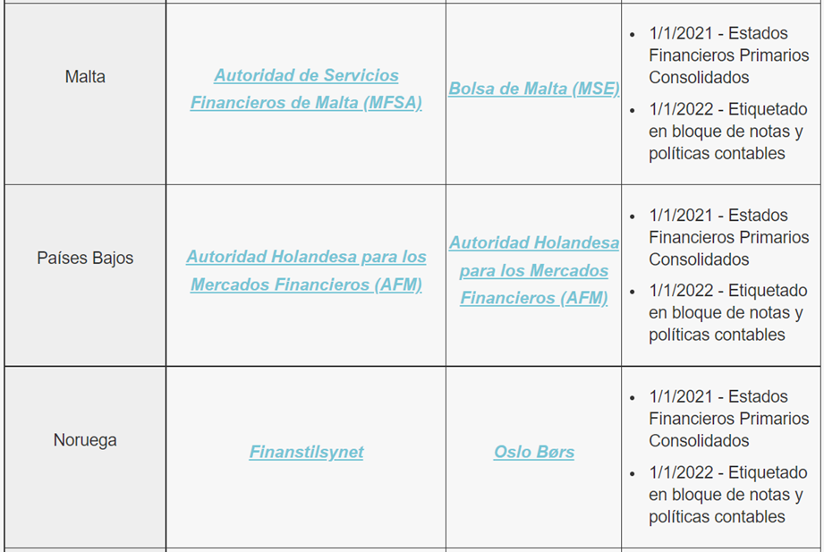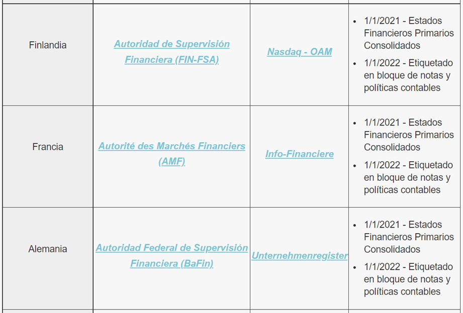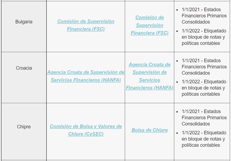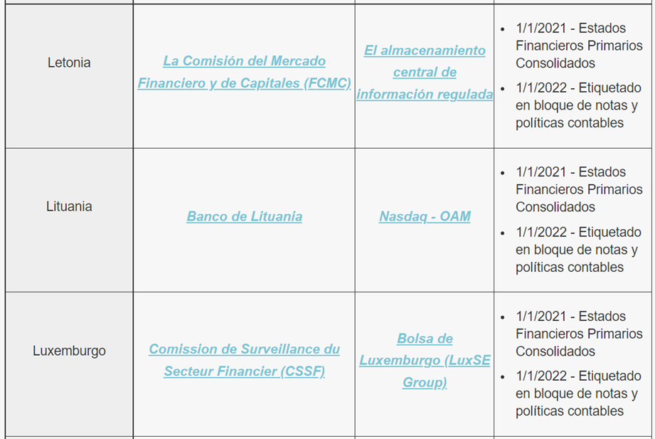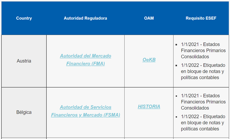 Con el Formato Electrónico Único Europeo (ESEF) basado en XBRL en línea ahora obligatorio para la presentación de informes financieros en toda la UE. Su nueva lista compila y proporciona enlaces a la Autoridad Reguladora relevante para cada país, así como al Mecanismo Oficialmente Designado (OAM) utilizado por las empresas para presentar sus informes.