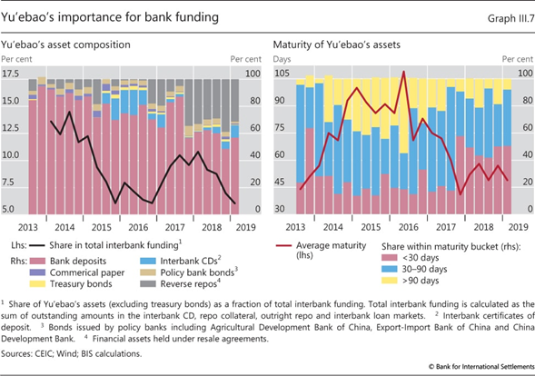 En China, los FMM ofrecidos a través de las grandes plataformas tecnológicas han crecido sustancialmente desde sus inicios ( Gráfico III.3 , panel izquierdo). En cinco años, el fondo del mercado monetario de Yu’ebao ofrecido a los usuarios de Alipay se convirtió en el FMM más grande del mundo, con activos superiores a 1 billón de CNY (150.000 millones de dólares estadounidenses) y alrededor de 350 millones de clientes.