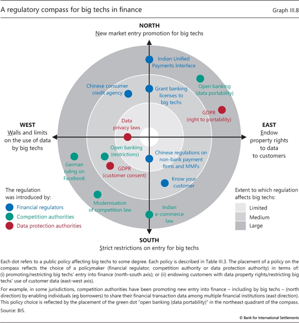 También existen importantes desafíos nuevos y desconocidos que se extienden más allá del ámbito de la regulación financiera como se concibe tradicionalmente. Las grandes tecnologías tienen el potencial de convertirse en dominantes a través de las ventajas que ofrece el ciclo de actividades de red de datos, lo que aumenta la competencia y los problemas de privacidad de los datos. La política pública debe basarse en un enfoque más integral que se base en la regulación financiera, la política de competencia y la regulación de la privacidad de los datos. El objetivo debería ser responder a la entrada de las grandes tecnologías en los servicios financieros para beneficiarse de las ganancias y limitar los riesgos. Dado que las operaciones de las grandes tecnologías abarcan los perímetros regulatorios y las fronteras geográficas, la coordinación entre las autoridades, nacionales e internacionales, es crucial.