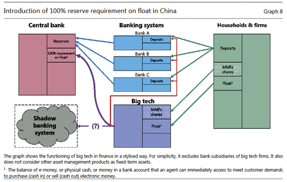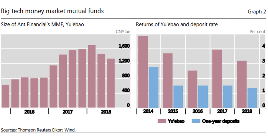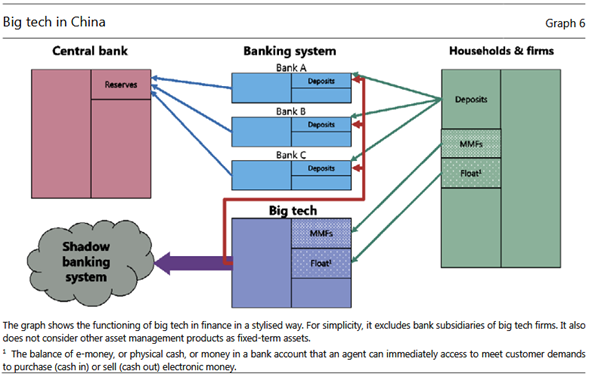 Un tercer punto se relaciona con el papel que el dominio de las grandes empresas de tecnología en los sistemas de pago les permite en el sistema financiero más amplio. Por ejemplo, en China, el tamaño de algunos chinos MMFs puede plantear riesgos financieros sistémicos potenciales.