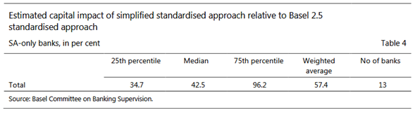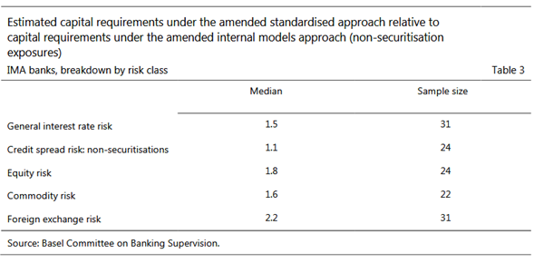 No se abordó la falta de sensibilidad al riesgo del método estandarizado. El Comité centró sus revisiones de Basilea 2.5 en cambios al enfoque de modelos internos. Esto fue en reconocimiento de la necesidad de una respuesta rápida a los niveles insuficientes de capital mantenidos por los bancos con importantes actividades comerciales que tienden a utilizar el enfoque basado en modelos para determinar los requisitos de capital. Las deficiencias del enfoque estandarizado no se abordaron. Por lo tanto, su diseño continuó siendo demasiado insensible al riesgo, lo que significa que los requisitos de capital no estaban alineados con los impulsores del riesgo. Además, su calibración se mantuvo sin cambios desde su introducción en 1996