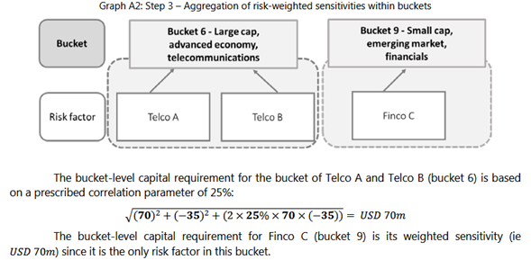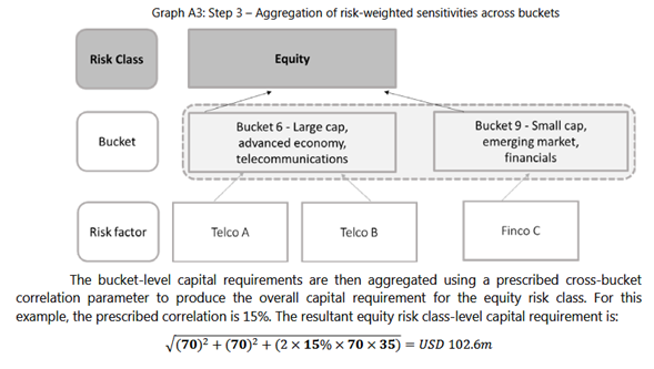 Amplio reconocimiento de los efectos reductores de riesgo de la cobertura y la diversificación. El enfoque de modelos internos de Basilea 2.5 no tenía restricciones para reconocer los beneficios de cobertura y diversificación en diferentes clases de activos (por ejemplo, acciones y divisas) en función de estimaciones de correlaciones derivadas de datos históricos anteriores a la crisis. En la crisis, los efectos de diversificación que se basaban en datos históricos desaparecieron.