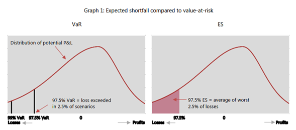 Incentivos para que los bancos asuman riesgos de cola. Aunque el marco de Basilea 2.5 tuvo mejor en cuenta el riesgo de cola al introducir el requisito de VaR estresado, el diseño del VaR y las métricas de VaR estresado básicamente ignoraron las pérdidas que tenían menos del 1% de probabilidad de ocurrir. Esto creó incentivos perversos para mantener posiciones que presentaban importantes riesgos de cola, pero estaban sujetas a un riesgo limitado en condiciones «normales».