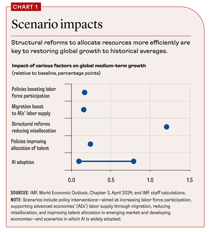 Las reformas para abordar la mala asignación de recursos pueden impulsar la productividad lo suficiente como para reactivar el estancado crecimiento mundial