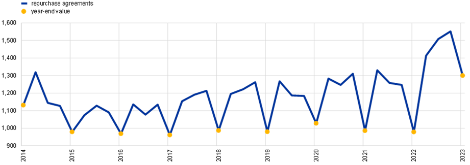 Si bien las caídas observadas a finales de año podrían deberse a muchos factores, incluida una disminución estacional de la demanda de intermediación en el mercado por parte de los bancos, muchos estudios indican que estos patrones están impulsados sustancialmente por un comportamiento activo de escaparatismo. El ratio de apalancamiento y los marcos G-SIB parecen ser los principales incentivos para la fachada, como por ejemplo se ha analizado en un reciente informe Artículo del Boletín Macroprudencial del BCE e investigación por el personal del BCE.