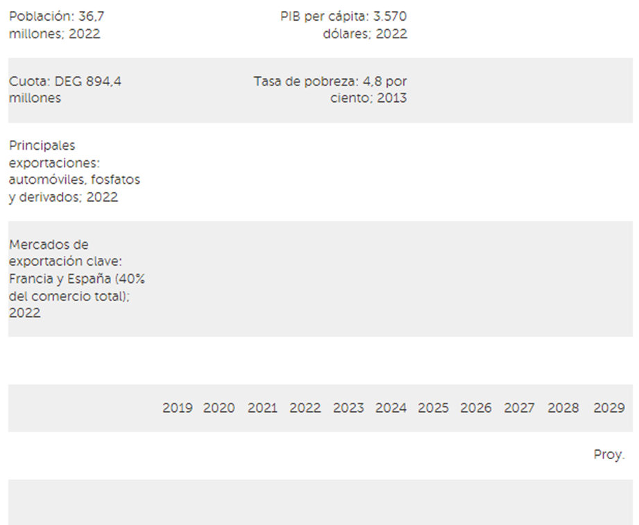 | Marruecos: indicadores económicos seleccionados, 2019-29 |