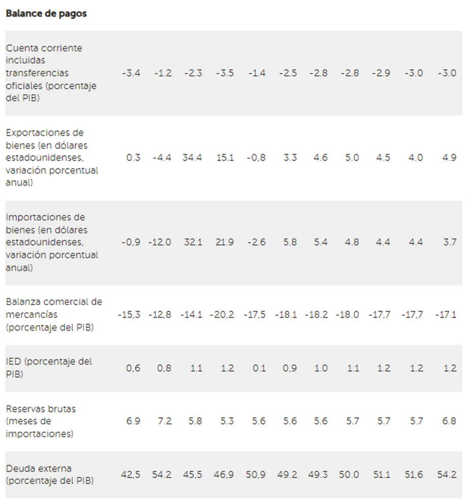 El déficit de cuenta corriente se redujo significativamente. Esto refleja tanto un déficit comercial reducido de bienes (impulsado por los menores precios de importación de energía, bienes primarios e intermedios y alimentos, así como el sólido desempeño de las exportaciones de automóviles y productos electrónicos), una exportación boyante de servicios (tanto turísticos como no -relacionados con el turismo) y la continua expansión de las remesas entrantes.