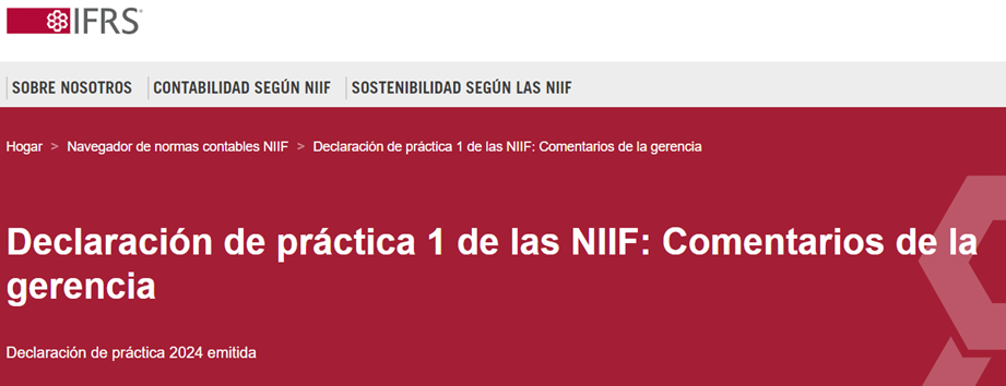 Emitido en diciembre de 2010, el Comentario de la Gerencia sobre la Declaración de Práctica proporciona un marco amplio y no vinculante para la presentación de comentarios de la gerencia relacionados con estados financieros que han sido preparados de acuerdo con las Normas NIIF.