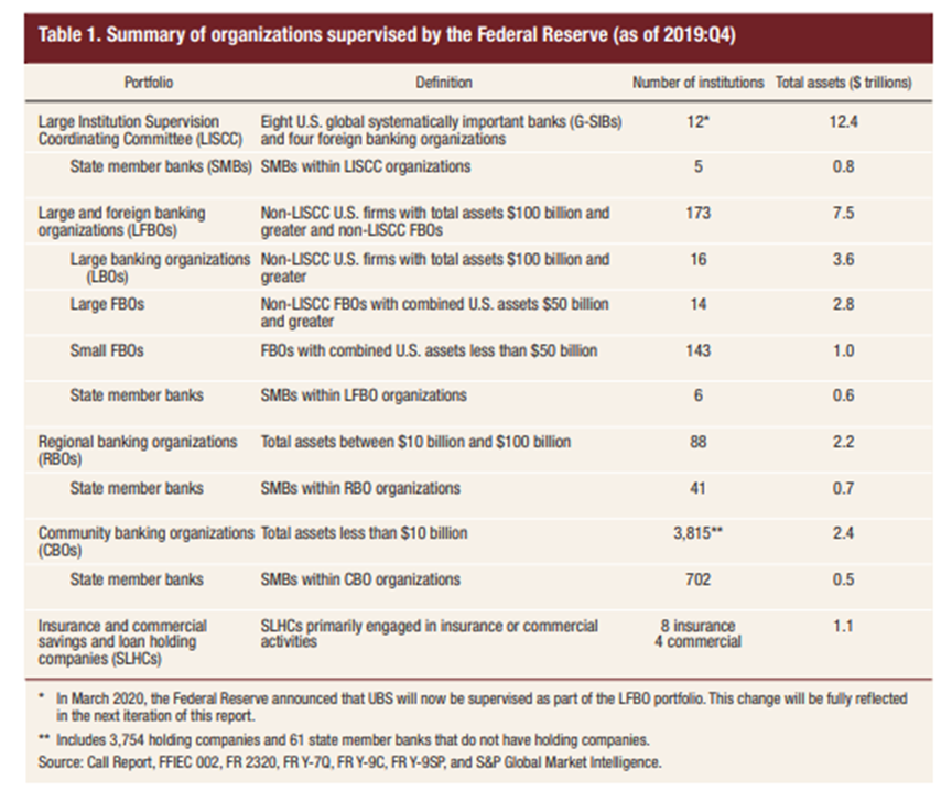 Tabla 1. Resumen de organizaciones supervisadas por la Reserva Federal (a partir de 2019: cuarto trimestre)