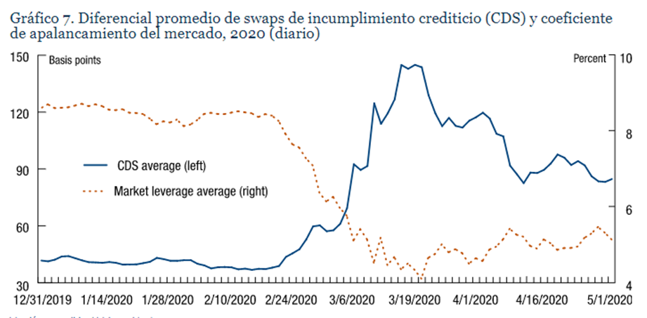 Las tensiones en los mercados de financiación bancaria se han aliviado algo desde su situación de estrés en marzo. Los bancos tienen cada vez más posibilidades de acceder a los mercados de financiación a corto plazo a plazos más largos de seis meses y más, una mejora con respecto a finales de marzo, cuando los mercados a corto plazo estaban cerrados en su mayoría con vencimientos superiores a una semana. Los bancos emitieron cantidades sustanciales de deuda a largo plazo a lo largo de abril. En general, los grandes bancos se han mantenido por encima de su índice de cobertura de liquidez y los requisitos internos de prueba de estrés de liquidez. Si bien los préstamos bancarios han crecido considerablemente, los depósitos han crecido con la misma rapidez, lo que respalda las saludables posiciones de liquidez de los bancos.