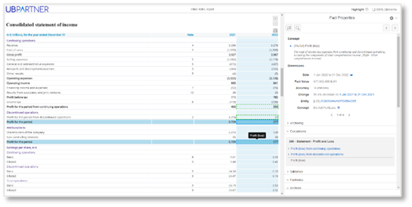 Un visor iXBRL muestra, por ejemplo, los cálculos entre los elementos de una declaración, puede mostrar dónde hay errores en estos cálculos e identificar posibles elementos que faltan, lo que requiere una exploración más detallada de otras secciones, como las notas informativas. .