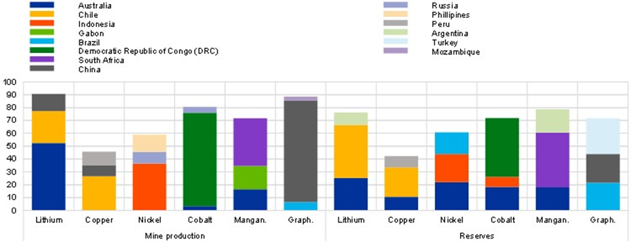 Recientemente, la UE ha dado un paso importante al adoptar la Ley de Materias Primas Esenciales. De aquí a 2030, al menos el 10 % del consumo anual de materias primas críticas de la UE debe extraerse dentro de la UE, y el 40 % debe procesarse en el país. Además, se simplificarán los procedimientos de aprobación de los proyectos de materias primas y los proyectos estratégicos se beneficiarán del acceso a la financiación y de plazos de aprobación más cortos. También se promueve la reciclabilidad de los minerales, ya que al menos el 15% del consumo anual debería cubrirse con el reciclaje doméstico en 2030. La cuota de importaciones procedentes de un único tercer país tampoco debe superar el 65 % del consumo anual. Este índice de referencia tiene como objetivo diversificar los riesgos de suministro, lo que se verá respaldado por la creación de un club de materias primas para los países interesados en reforzar las cadenas de suministro mundiales y el establecimiento de un mecanismo de crédito a la exportación de la UE para reducir los riesgos de invertir en el extranjero.