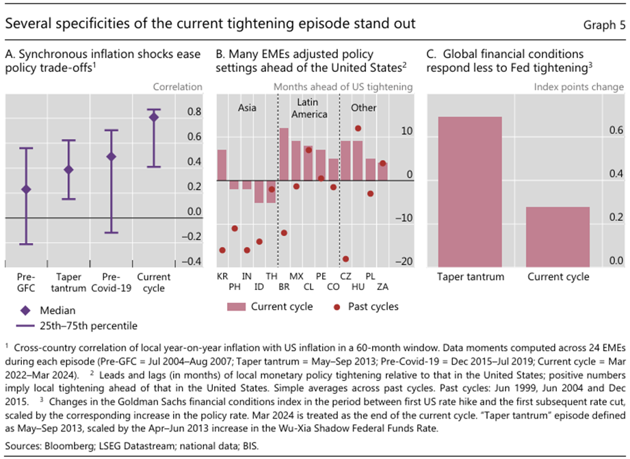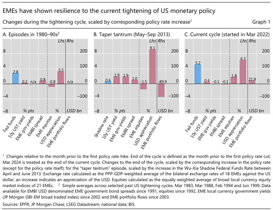 • Las economías de mercados emergentes rompieron con el pasado al mostrar resiliencia frente al rápido endurecimiento monetario en las economías avanzadas. Los factores estructurales estaban en juego, siendo fundamental mejorar la política monetaria y los marcos prudenciales.